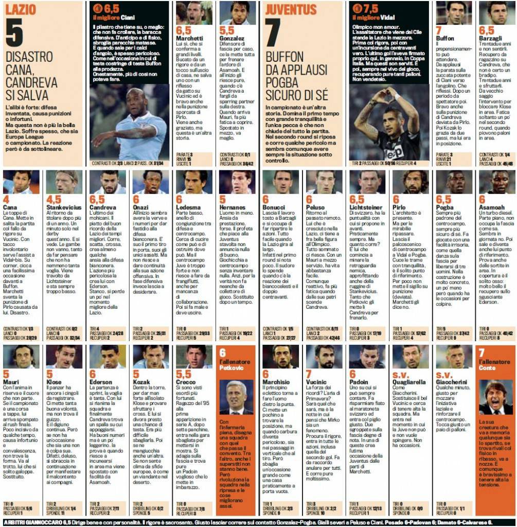 Lazio Juventus Voti E Pagelle Gazzetta Dello Sport Vidal Da Non Vendere Vucinic Fa Il Fenomeno Cana Disastroso Foto Calciomercatonews Com